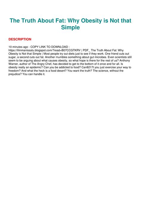 Read Online The Truth About Fat: Why Obesity is Not that Simple Epub
